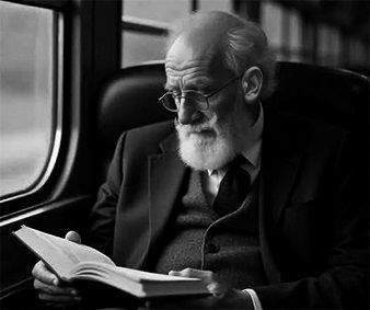 Tuve que restregarme los ojos como quien no puede creer lo que está viendo. Sentado muy tieso sobre un asiento de cuero verde un hombre parecía meditar sobre las palabras de un libro entreabierto. Entonces levantó la vista y sus ojos parecieron enfocar los míos, tras sus lentes redondos de fina montura metálica, su mirada parecía medir el mundo con fría lucidez, y entonces, siempre en francés, completó la frase:
